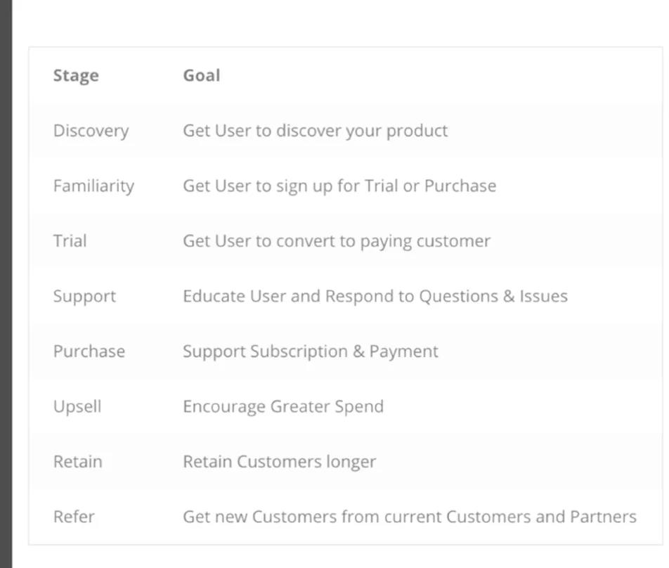 做SaaS产品和服务的小伙伴们对这个旅程应该并不陌生。客户所在的每一个阶段,内容所服务的目标都是不一样的。我们希望客户完成从A点现有状态到B点理想状态的迁徙,就需要不断给他刺激,可以是内容层面的,也可以是产品层面的。