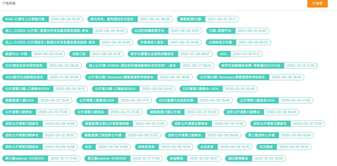 2021年,酒旅行业由于疫情影响,不确定性依然很大,我们对外活动赞助基本都停了。但截至目前,行业大会演讲/客户/院校会议,我们基本上每个月都有1-2场分享,都是免费的。