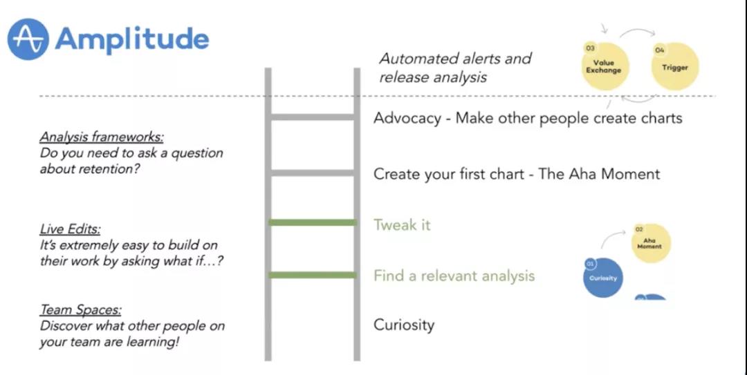 我引用前几天听过的Amplitude市场副总裁的一个分享。引导用户的过程,更像是一个爬梯子的过程。我觉得这个说法特别好。