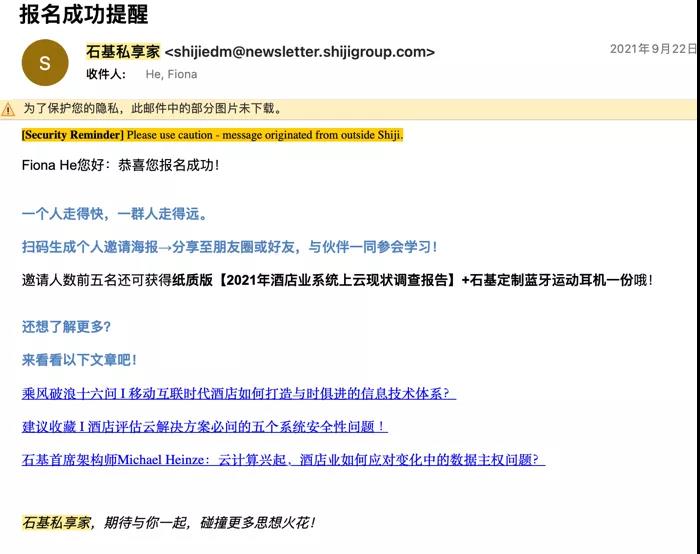 同时我们也需要能够把握每一次用户交互的触点,进行相关内容的推荐,尽可能的延长用户在你的内容体系停留的时间,甚至是在以下活动报名成功提醒的邮件界面。目的就是让用户与你产生深度互动。