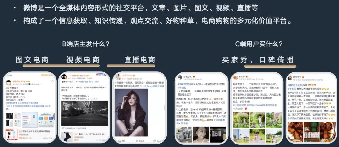 微博是内容多元的消费生态圈,广义上来看,用户能够在微博获取信息或交流观点。当品牌在微博进行电商营销的时候,要利用好微博"全"媒体的特点。