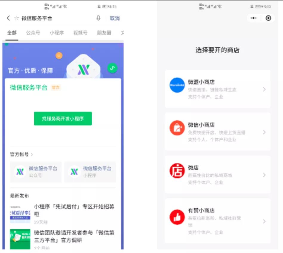 此外,官方建议直播不要低于4小时,并尽量错开早上、凌晨等高峰时间。如未开通小程序商家,可微信搜索“微信服务平台”,选择合适的开店工具开店。
