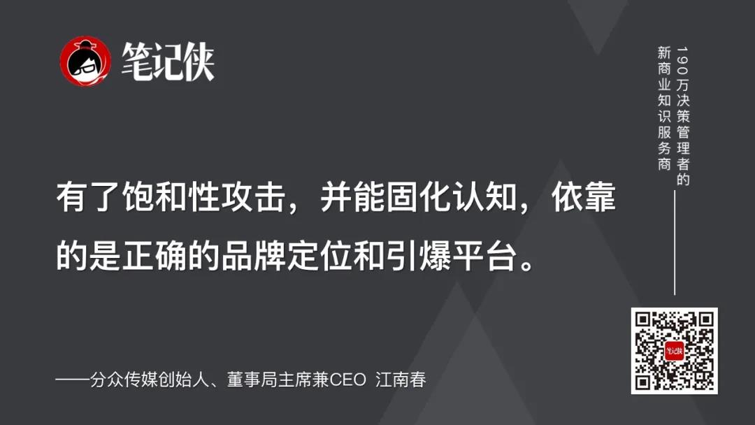 有了饱和性攻击,并能固化认知,依靠的是正确的品牌定位和引爆平台。