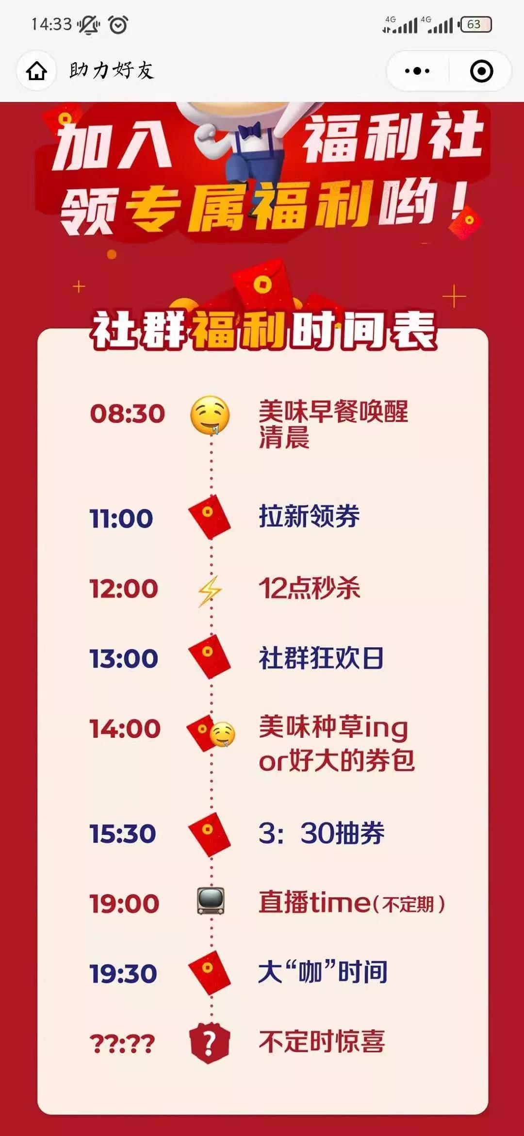 这张福利表是瑞幸在入群链接中自带的,我们从其中能够看出瑞幸社群运营的SOP