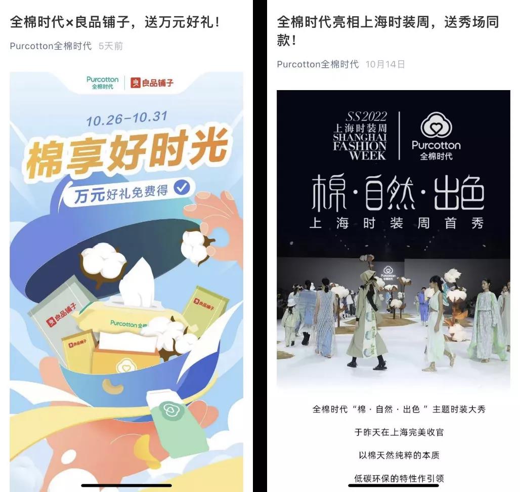 例如全棉时代会发一些品牌联名,时装周合作等内容,增强了品牌的影响力。