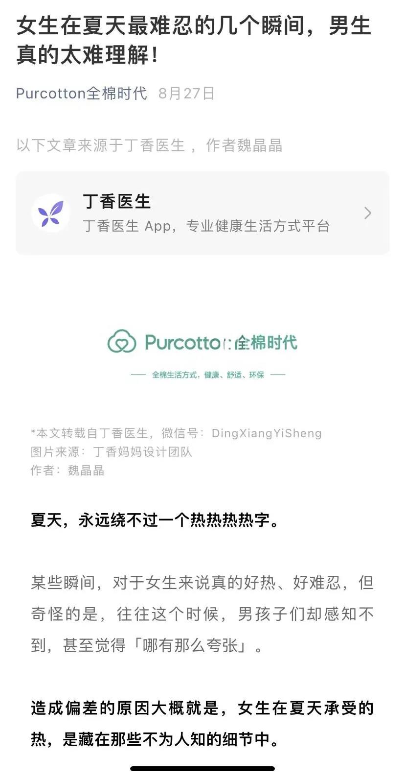 例如全棉时代会转载丁香医生的文章,它们的受众群体比较相似。
