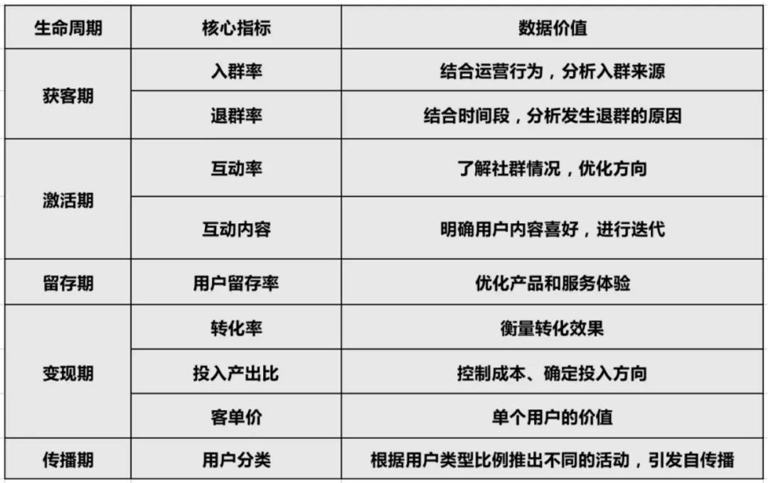 数据分析的重点建议关注5个用户阶段和9个关键指标,及时复盘社群运营效果,提升用户周期的各环节的掌控力,逐步改进社群运营,实现用户转化。