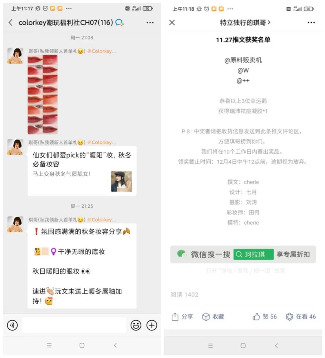 (2)【宝贝, 后续有什么建议或需要复购都可以找我哦,邀请你进 colorkey 的会员群呀,优惠活动和彩妆教程都会发在群里哒~进群可首页领取新人礼价值 49 单色眼影,小程序首单随单附送哦。+链接 】