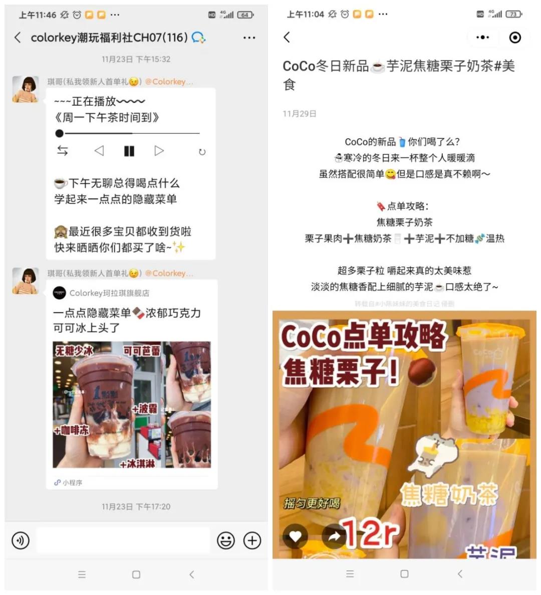 下午时间,会发布比较生活化的内容和话题,促进用户互动交流,比如奶茶分享,以文案+链接形式,点击链接是详细的奶茶产品介绍,和图片,更加贴近用户。