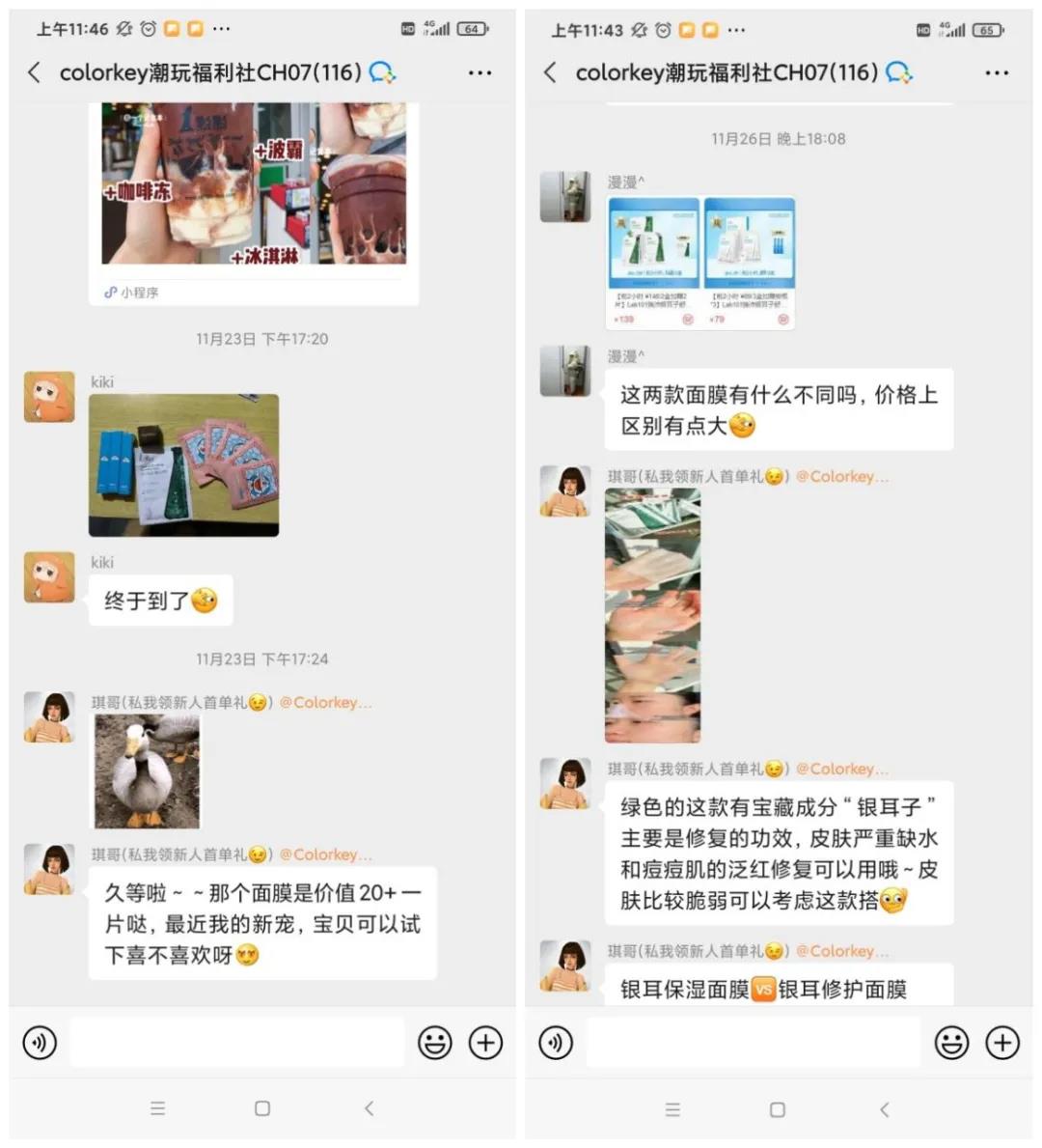 会有客户互动,询问产品内容,分享产品使用感受,能够引起其他用户的兴趣,促进社群活跃,特别是用户询问产品和活动后,群主非常自然的再次推出产品介绍,更容易吸引用户注意,从而促进消费。