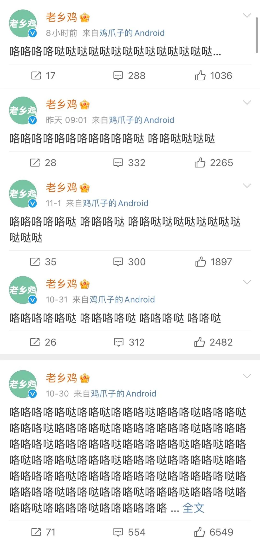 老乡鸡就将废话文学演变成了品牌营销的日常,在老乡鸡的官方微博上,很多微博内容就由"咯哒"两字组成,这既是品牌模仿鸡叫的声音,又将产品特色与消费者的记忆产生了关联,同时还实现了品牌与用户之间的交流。