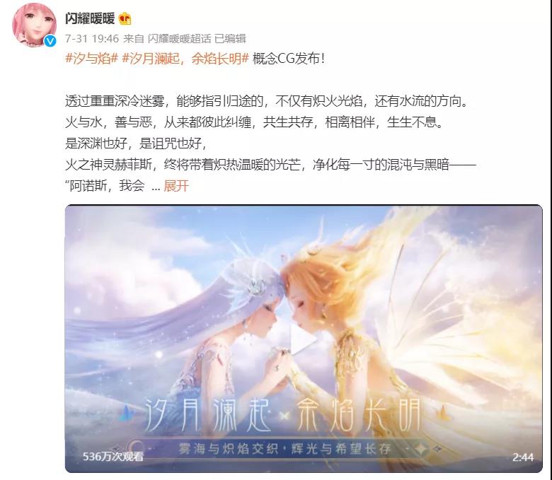 "闪耀暖暖"的回馈型触发主要从视觉上进行的。每当游戏中有新的活动上线,微博等各大平台都会上线相当精美宣传片和海报,吸引老玩家回坑,新玩家继续氪金。