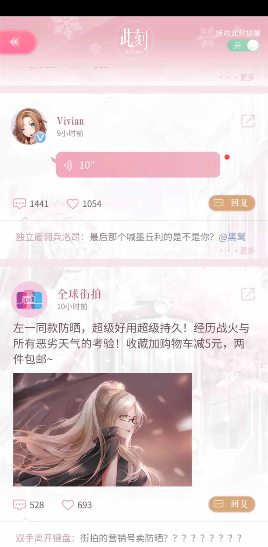 ③建设"此刻"平台,类似于微信朋友圈,分享游戏中主角和配角的生活