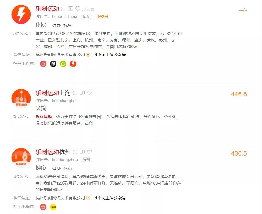 ②公众号:主要是主号"乐刻运动"+地区号