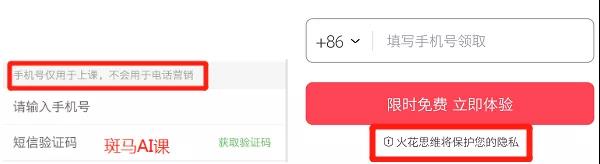①可以在获取手机号下方,增加一行小字"此手机号只用于注册预约,不会泄露您的隐私"之类的话术,可参考斑马AI课和火花思维的做法。