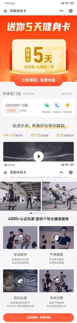 从用户心理来讲,0元领5天健身卡,利用了用户的占便宜心理,降低了用户的参与难度。
