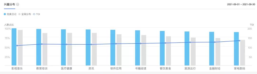 兴趣分布:从兴趣分布来看,受众群体的兴趣分布较为平均。
