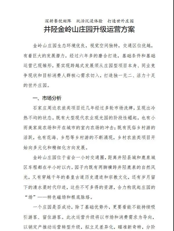 公司组建后承接了一些景区、庄园项目的运营推广。金岭山庄园项目经过团队6个月的运营推广,取得了一些阶段性成果。庄园最火爆的时候,庄园里的铁锅炖一天可以翻五次台,许多顾客等到晚饭的时候才吃上期待已久午餐。我将金岭山项目的运营过程进行了一次简单复盘,梳理成了一篇图文分享给大家,希望对休闲庄园运营推广感兴趣的朋友有所帮助。