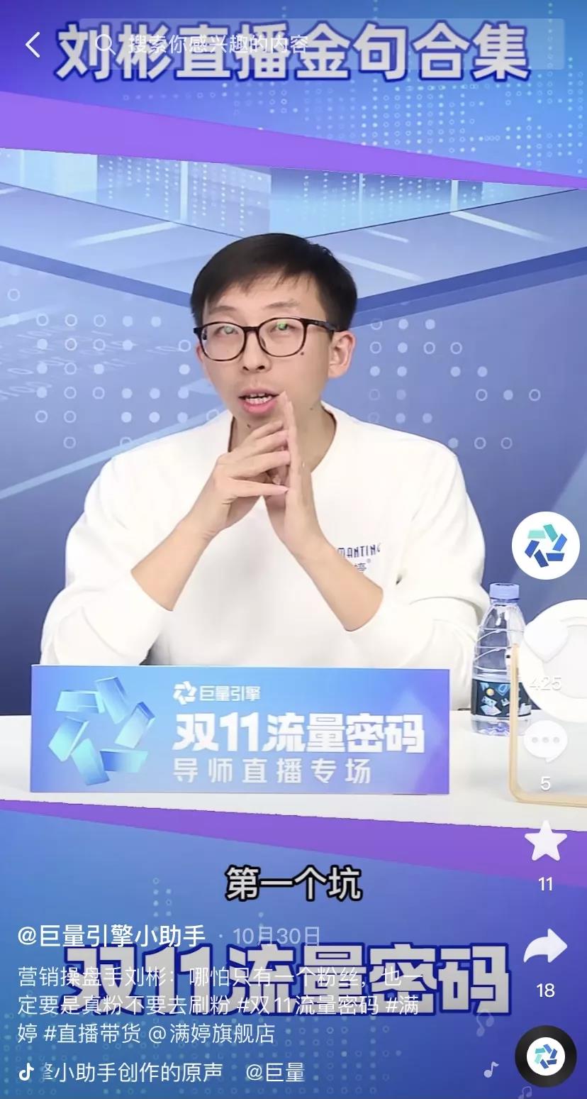 近期一段时间中,巨量引擎邀请了朱萧木、申晨、沈帅波、刘彬等17位嘉宾展开系列直播分享,这个“双11导师课程计划”分别从流量规则密码、直播选品密码、引流内容密码、高潜力人群密码等维度展开。