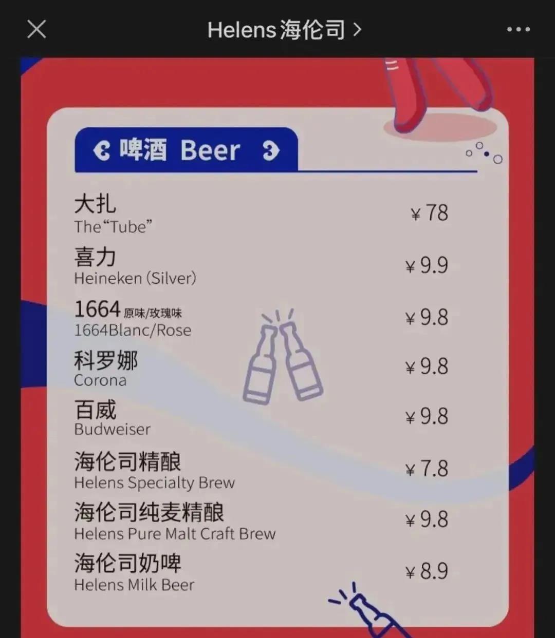 所以,海伦司的10元定价是要被同行质疑的:大家都是开酒吧的,为什么你这么卷?