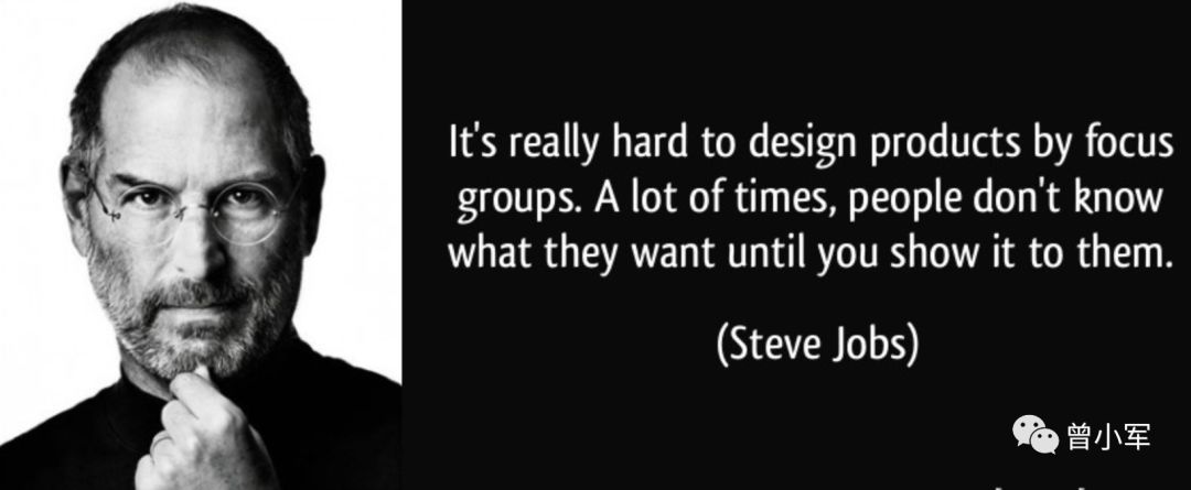 乔布斯的意思是:只有当你把产品给消费者看了,他才会告诉你他的想法,他才知道这个产品是不是自己想要的,没有用户可以非常清楚地告诉你他们需要什么。