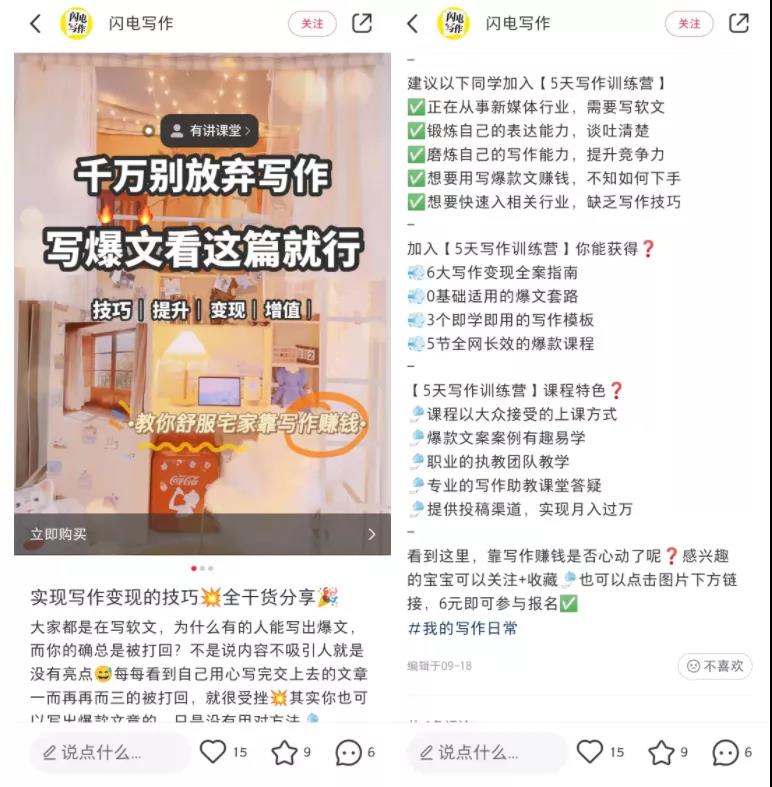 笔记内容基本相同,大致是在开头的几句话列出写作变现遇到的痛点问题,引起阅读者的共鸣。