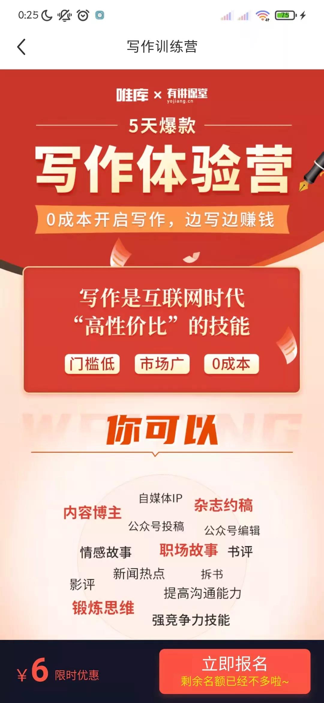 立即报名按钮下方放上剩余名额不多的字眼,吸引用户尽快下单。