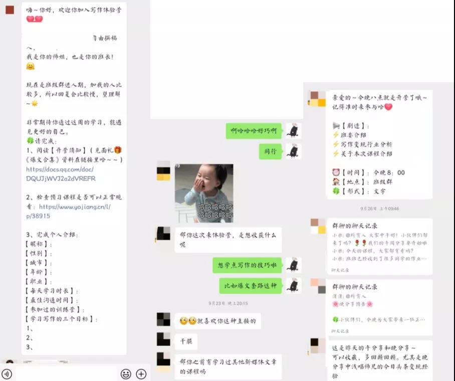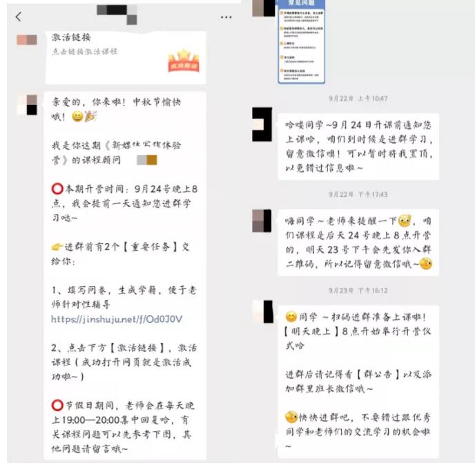 开课中:每天的分享总结、作业评价及讲解、如跟踪学员的学习情况,老师直播预告及链接分享