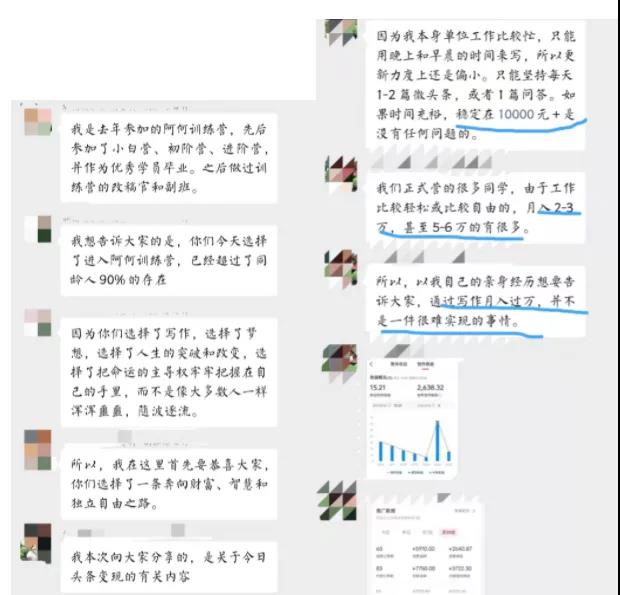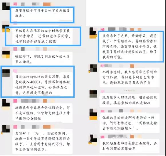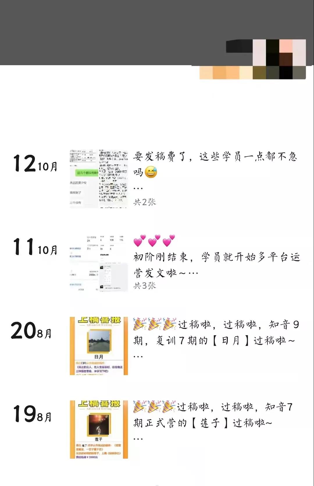 比如高阶课学员的上稿信息,一方面增加新学员的信心,用实际的例子证明通过学习就能够实现变现。