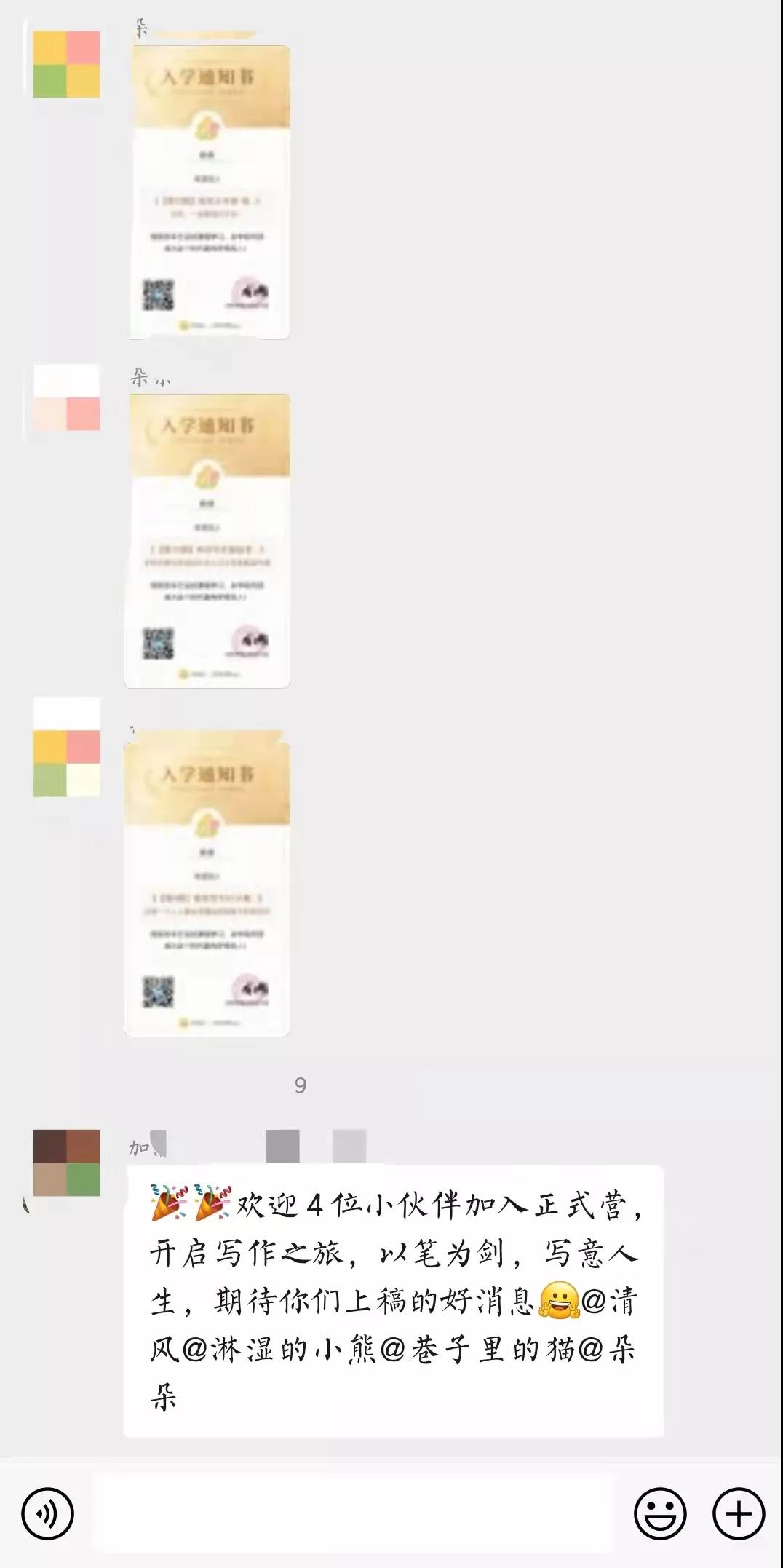 ⑤有人加入训练营后会在做非常有仪式感的入学通知书,并在大群内发送
