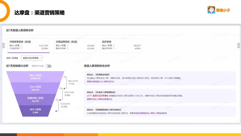 二是DEEPLINK分析,这是在营销洞察基础上的升级功能,基于阿里品牌数据银行的"AIPL"分析模型,进行DEEPLINK深链经营分析。下一篇展开,关注草帽小子系列专辑,查看最新动态。