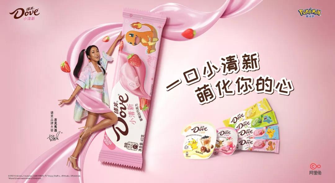 再来说说热衷联名的小清新系列。除了以功能需求为导向的产品以外,德芙在包装上的年轻化也非常有"辨识度","萌"和"清新"是很多联名款的关键词。像是与宝可梦的合作,就是看中了这个IP自带的"萌"属性,当比卡丘、小火龙、妙蛙种子这些印象中的经典形象出现在包装上时,很容易唤起大家的童真童趣。