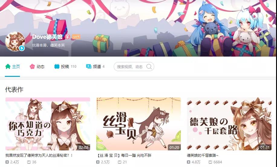在B站上,德芙以UP主"德芙娘"的身份出道,棕色系的洛丽塔人物不但迅速拉近了品牌与消费者的距离,也让产品变得更加人格化。