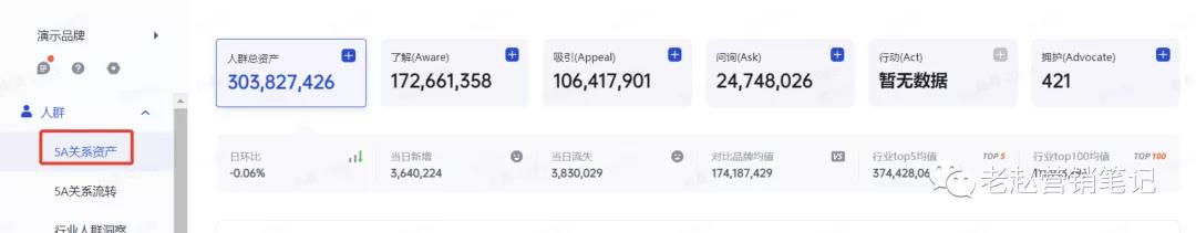 品牌要将自身的关系资产情况与行业情况进行对比,判断人群结构健康是否健康。如果不健康,要制定相应层级人群拉新策略,以提升品牌5A人群量级。例如:当品牌A3人群严重不足时,会造成转化效果越来越差。