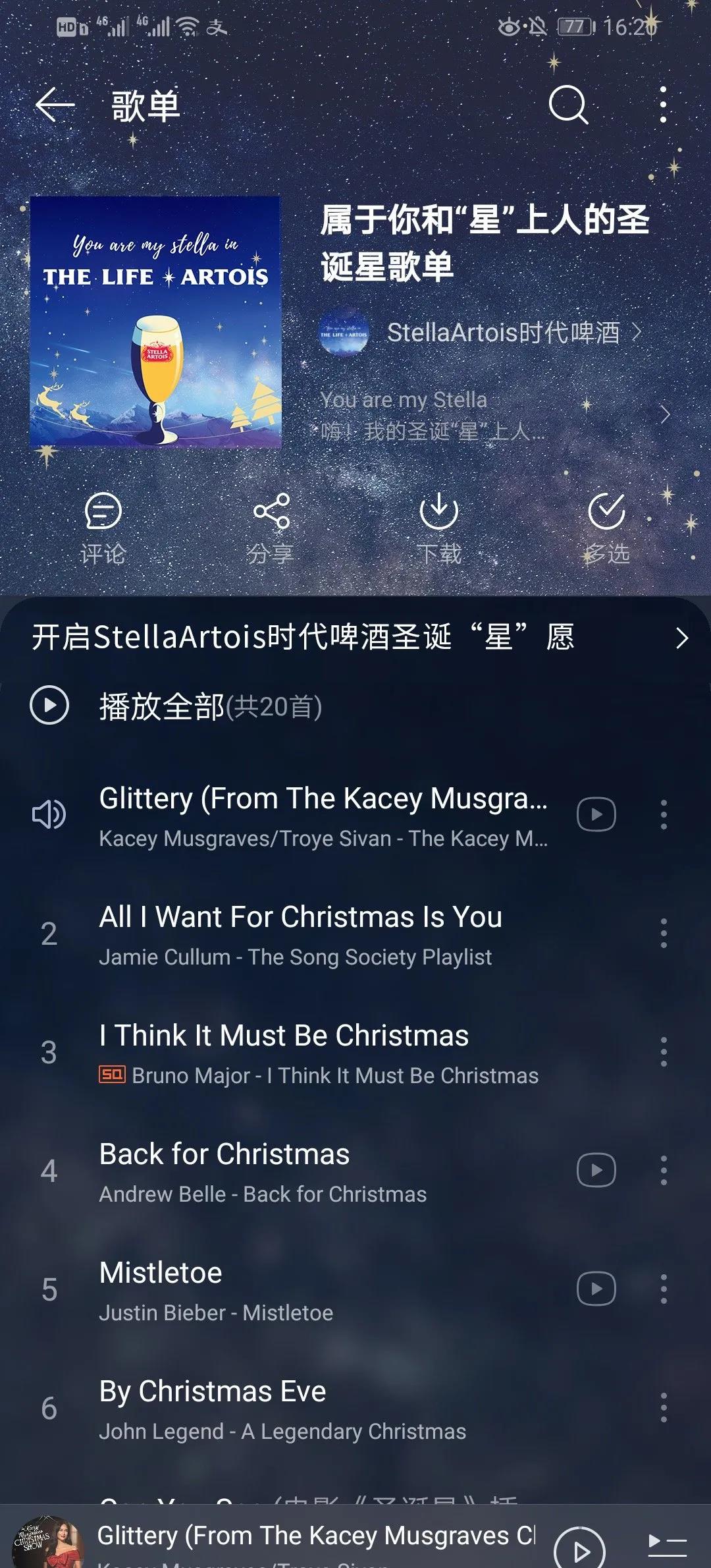 赏析:这是一组由时代啤酒和网易云联合推出的圣诞应景海报,第1张是"以歌传情"的"星"歌单,第2张到第5张是将产品融入到圣诞氛围里的宣传组图,再通过第6张微信扫码图表达自己的圣诞"星"意,整组海报完整传达了以赢得时代啤酒圣诞礼盒、星星命名权,为自己爱的人送上一份圣诞"星"意。