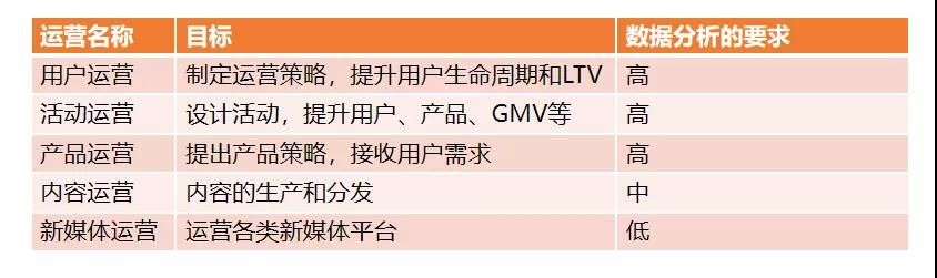 一般说来,用户运营和产品运营对于数据分析的需求比较高,毕竟很多想法和思路需要从数据中得到一些结论,从而后续更好地去执行和实施自己的想法,同时也需要根据以往的数据模型很好地去进行数据估算。内容运营虽然也需要数据分析,但是相对来说,更加依靠直觉和经验,内容这种东西很难去直接地量化评估。当然,能做好数据分析,其实能为内容的生产和分发加不少分。