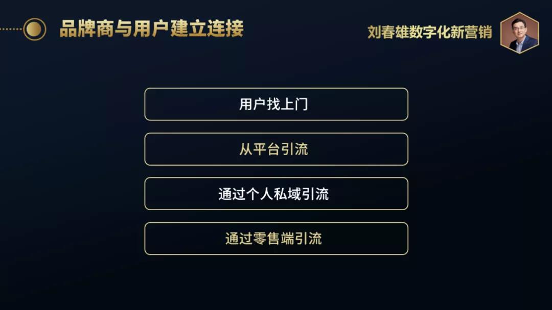 用户是品牌商的私域。传统上就有品牌认同、品牌忠诚,现在也有用户黏性的说法,差别在于数字化建立了深度连接。过去讲品牌忠诚,无数据实证,现在讲用户黏性是有数据支持的。