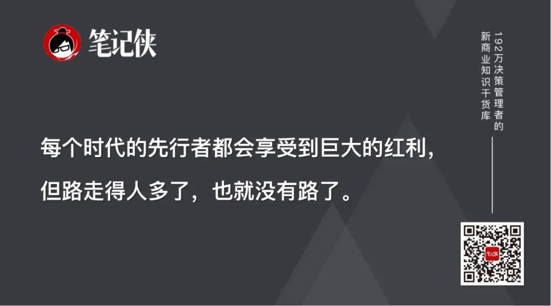 每个时代的先行者都会享受到巨大的红利,但路走得人多了,也就没有路了。