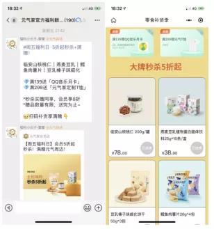 此活动形式为商品低价秒杀+限量满赠+会员享8折,通过较大的优惠力度,完成私域转化。同时,通过低价秒杀活动,可以测试哪些商品是受消费者所喜爱的。此活动主要是为社群用户提供福利,增强用户粘性。