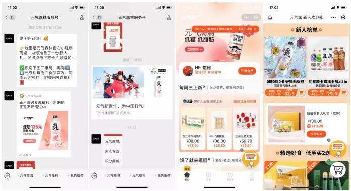 元气森林的私域矩阵为:小程序+服务号+企业微信+企业微信群,不仅大大减少了广告推广的费用,而且能够拉近与用户的距离,实现高频次推荐,能够在最大程度上保证转化率。