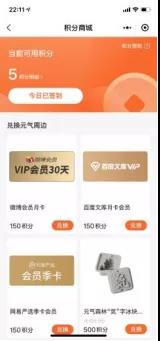 ②兑换周边产品(微博会员、百度文库会员及元气森林周边等);