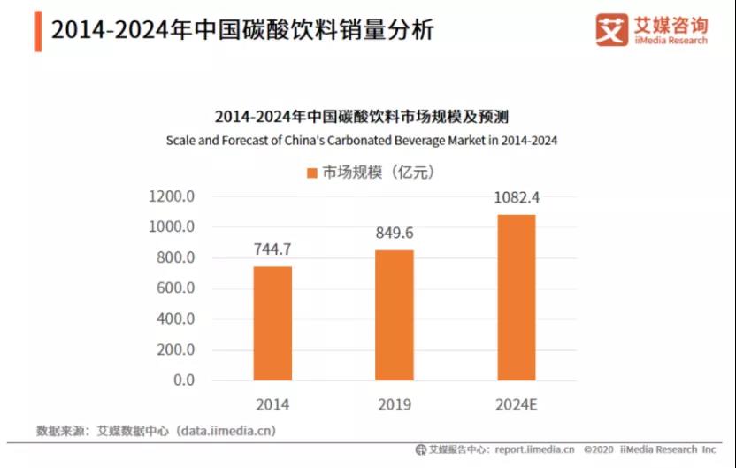 数据显示,2019年中国碳酸饮料市场规模为849.6亿元,2014-2019年CAGR仅约2%,行业发展逼近天花板。