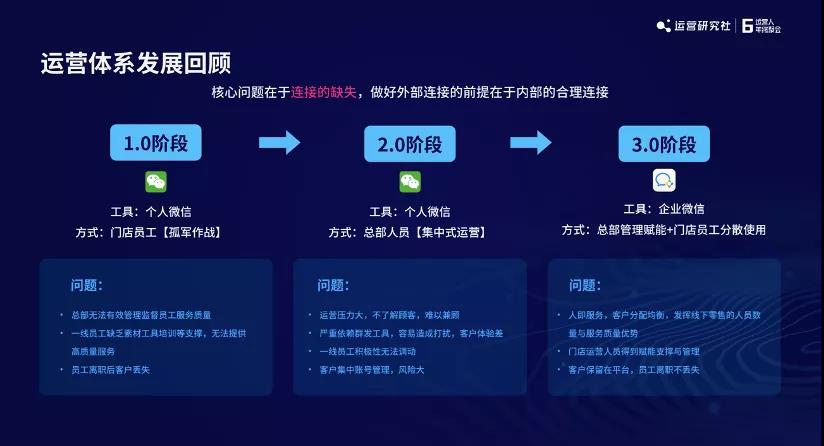 一旦企业微信介入,企业的传统渠道就成为私域3.0的天然路径。现在很多小程序,就是把个人基于个人微信改造得有分层功能,企业微信一次到位了。