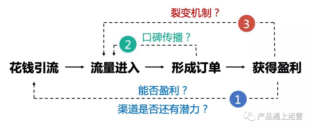 - 在获得盈利后,企业是否可以通过裂变机制的设计,以部分利润催化流量形成裂变传播,进而带入新的流量?如果也不能,那么"3"这条路就断了(裂变不是必须的,但良性的裂变,也就是投资小、推动力强、传播半径大的裂变机制,例如购物拼团和订单裂变红包,是极有帮助的)。