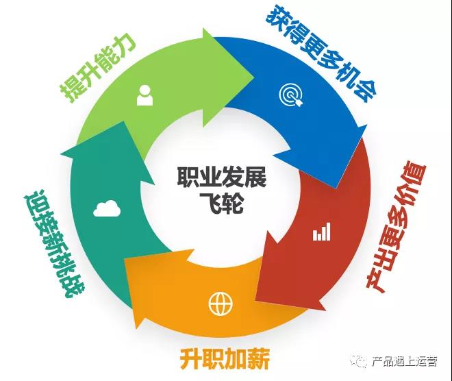 如果不进行精心的飞轮动力传输机制的推敲和相应的设计,并不是每个环节都可以自动向后续环节传递能量。举个很好理解的例子,比如职业发展,可以构建如下飞轮: