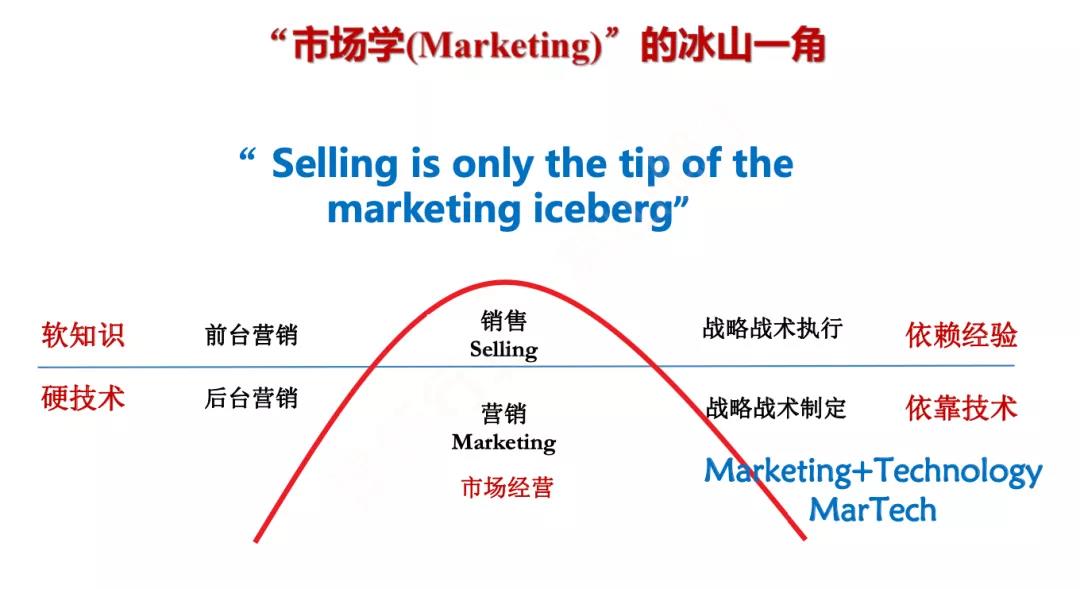 这张图表原始的框图模板来自华东师范大学的何佳讯教授(也是科特勒增长实验室导师之一),我做了一些改造。营销学科受到环境和消费者的变化趋势冲击之后,有了很大的变化。过去我们看到的营销学理论只是冰山一角,更多是依赖于经验,是处于一个所谓的弱规则下。而未来的市场营销可能更多要依赖于技术,也就是变得更科学,更能够“放之四海而皆准”,适用性更强。