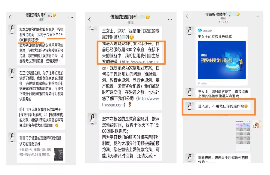 在没有建立用户信任基础的情况下,直接由理财师出面电话与用户沟通,不知道能有多少用户愿意向一位未曾谋面的陌生人,提供个人家庭情况以及资产收支信息呢?