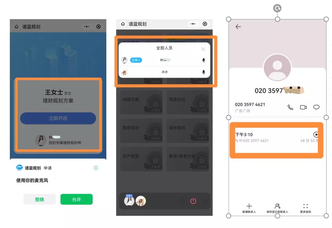 提前2分钟推送通话小程序等行为动作,可以体现出理财师的细致和专业,短时间内建立好感和信任铺垫。