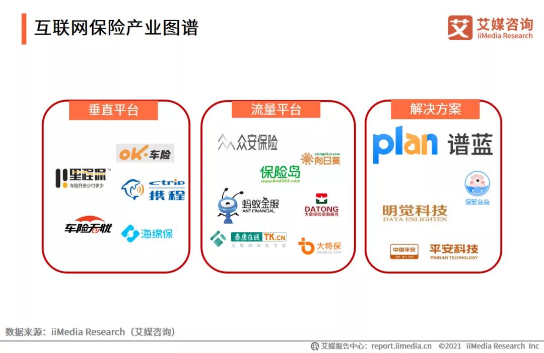 传统保险在垂直平台以及流量平台中发力,同时,形成了如谱蓝、明觉等互联网保险的解决方案类的新模式。