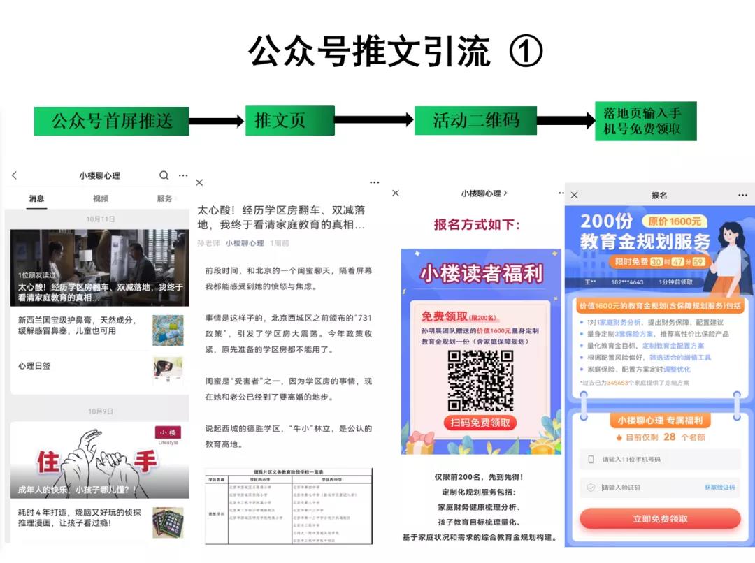 1)引流产品为"教育金规划服务",所以选择了宝妈关注和阅读量较多的公众号进行推文推送,加大了精准客户的筛选。